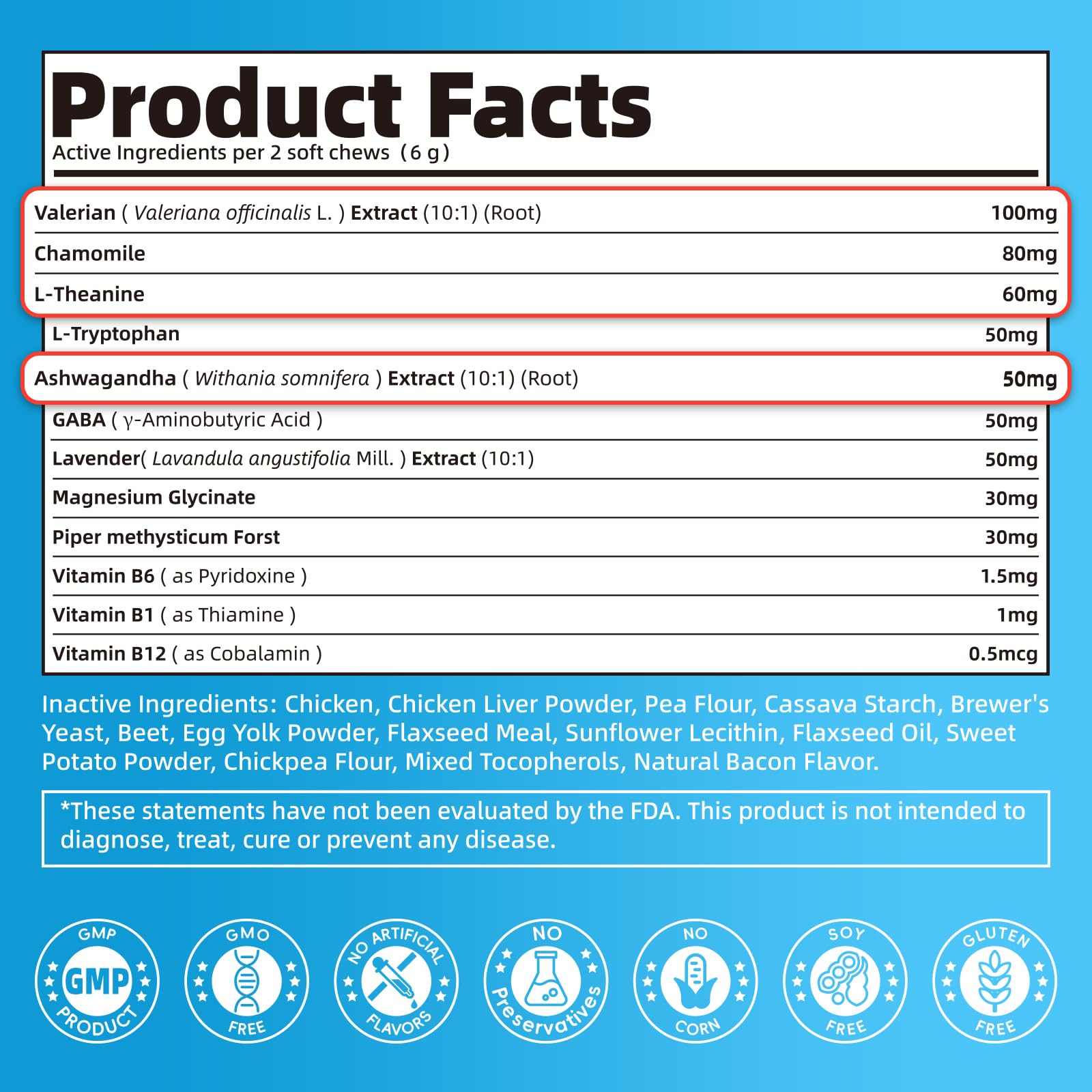 Calming Chews for Dogs – Calming Treats for Anxiety, Stress, Separation, Travel&Thunder, Relaxation & Focus Support with L-Theanine, Valerian Root, Chamomile & Ashwagandha, Bacon Flavor, 90Ct
